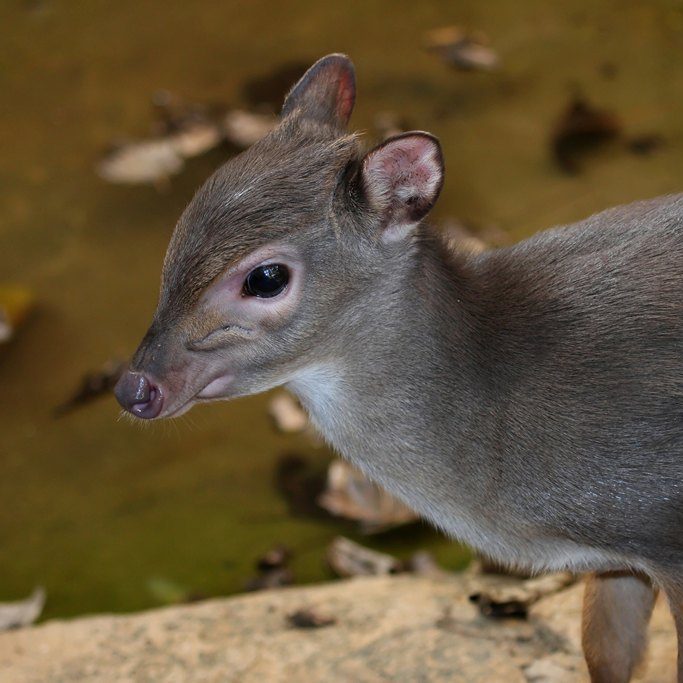 South Africa’s smallest antelope. Both sexes have little, straight horns that are sometimes barely visible due to a hairball covering them. They only measure about 300 mm at the shoulders and have a blue-gray coat. Although their preferred food is fresh leaves, fruit, and flowers, they are known to consume insects and bird eggs. Blue duikers typically pair off for life and spend the most of their time together.
